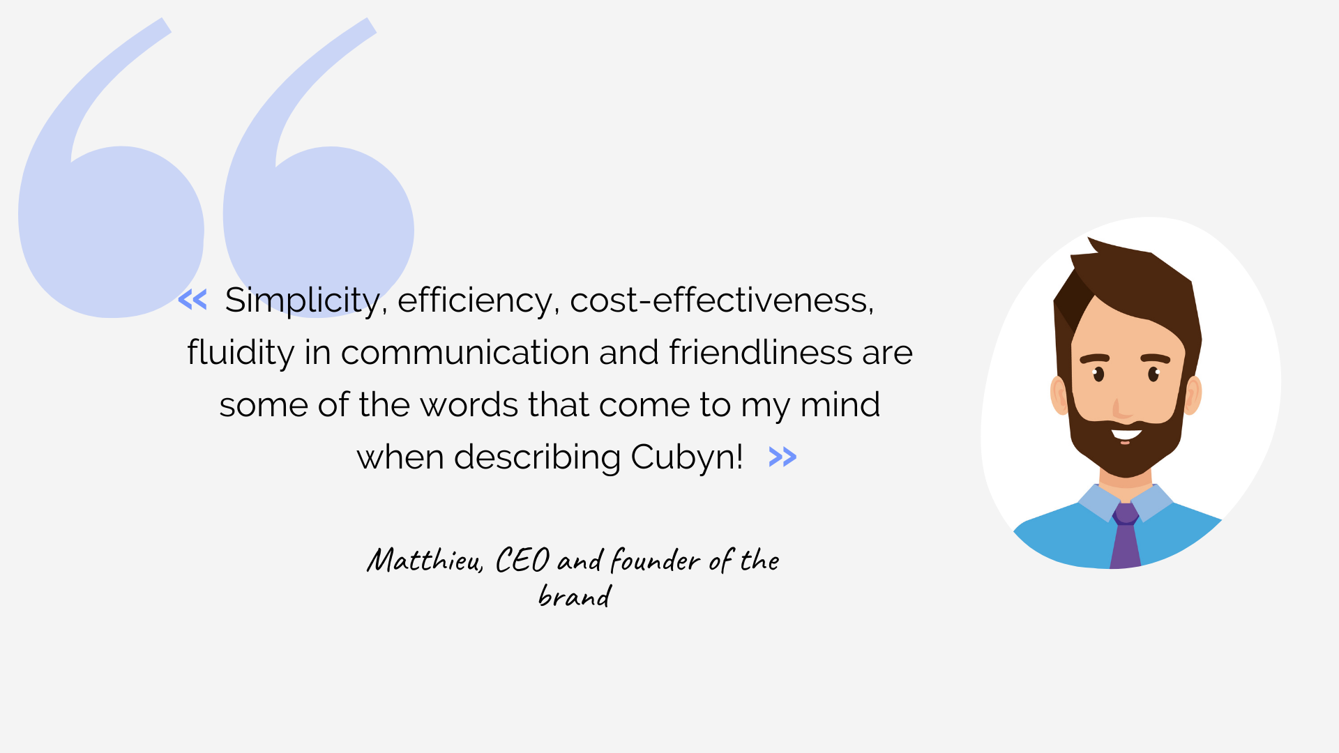 « Simplicity, efficiency, cost-effectiveness, fluidity in communication and friendliness are some of the words that come to my mind when describing Cubyn! »